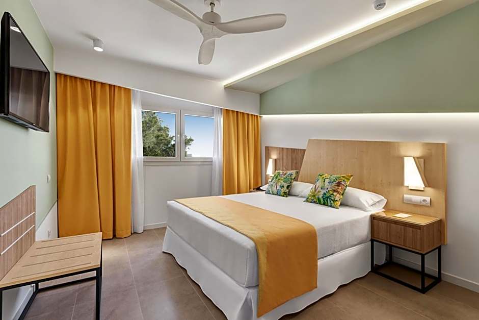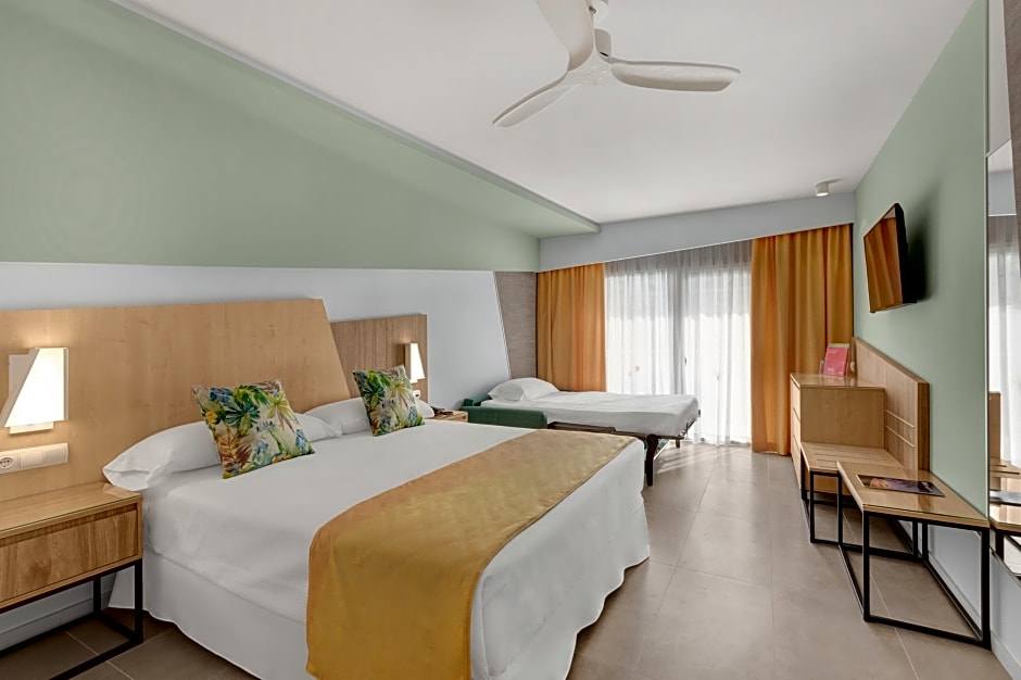 Double room Swim-Up adults only is 301 square feet and includes 2 double beds 131-150 width plus balcony and safe.